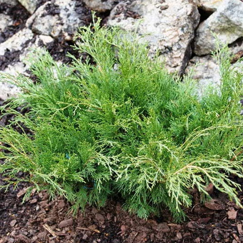 Очень декоративный хвойный кустарник с высокими декоративными качествами. Отличается широкой раскидистой формой кроны и красивой мягкой золотистой кроной, меняющей оттенок от более светлого к темно-желтому в течение года.