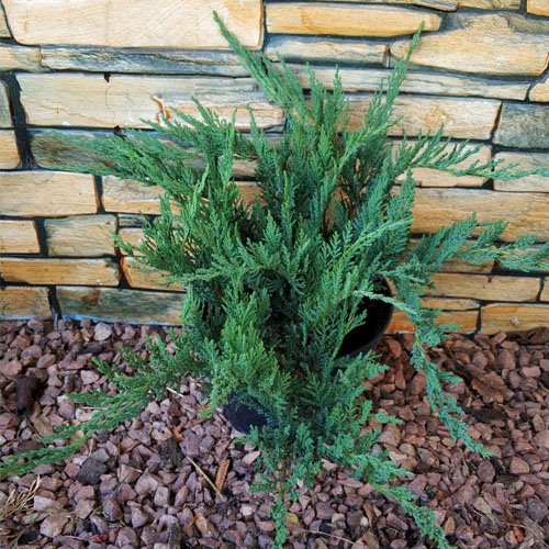 Крона плотная и густая. Побеги ползучие, длинные, ветвистые. Хвоя зелено-голубая, колючая. Один из лучших почвопокровных сортов можжевельника. Теневынослив, но лучше растет на солнечных местах.