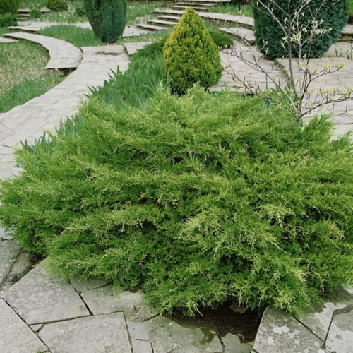 Можжевельник виргинский сорта Хетц отличается компактными формами и быстрым ростом. Используется для озеленения дачных участков, городских парков и скверов.